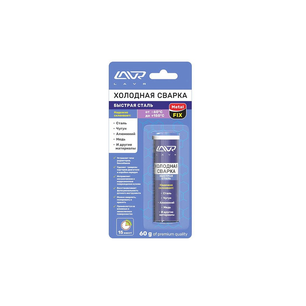 Сварка холодная быстрая сталь Lavr 60г.MetalFix (Ln1722) Сварка холодная быстрая сталь Lavr 60г.MetalFix (Ln1722)