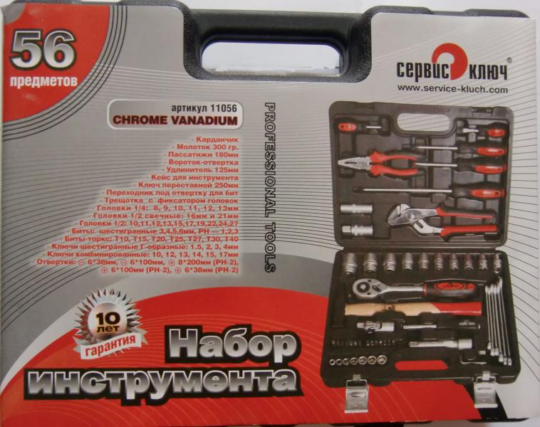 Набор инструментов 56 предметов состоит из:6 торцевых головок 1/4": 8, 9, 10, 11, 12, 13 мм